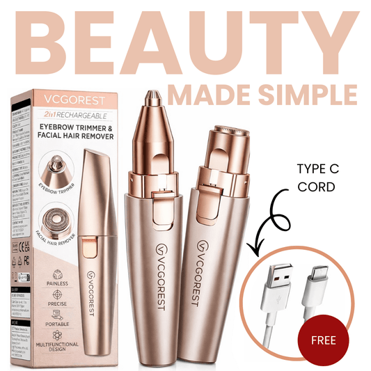 Eyebrow & Facial Trimmer: 2 in1 Rechargeable Facial Hair Removal & Eyebrow Shaver