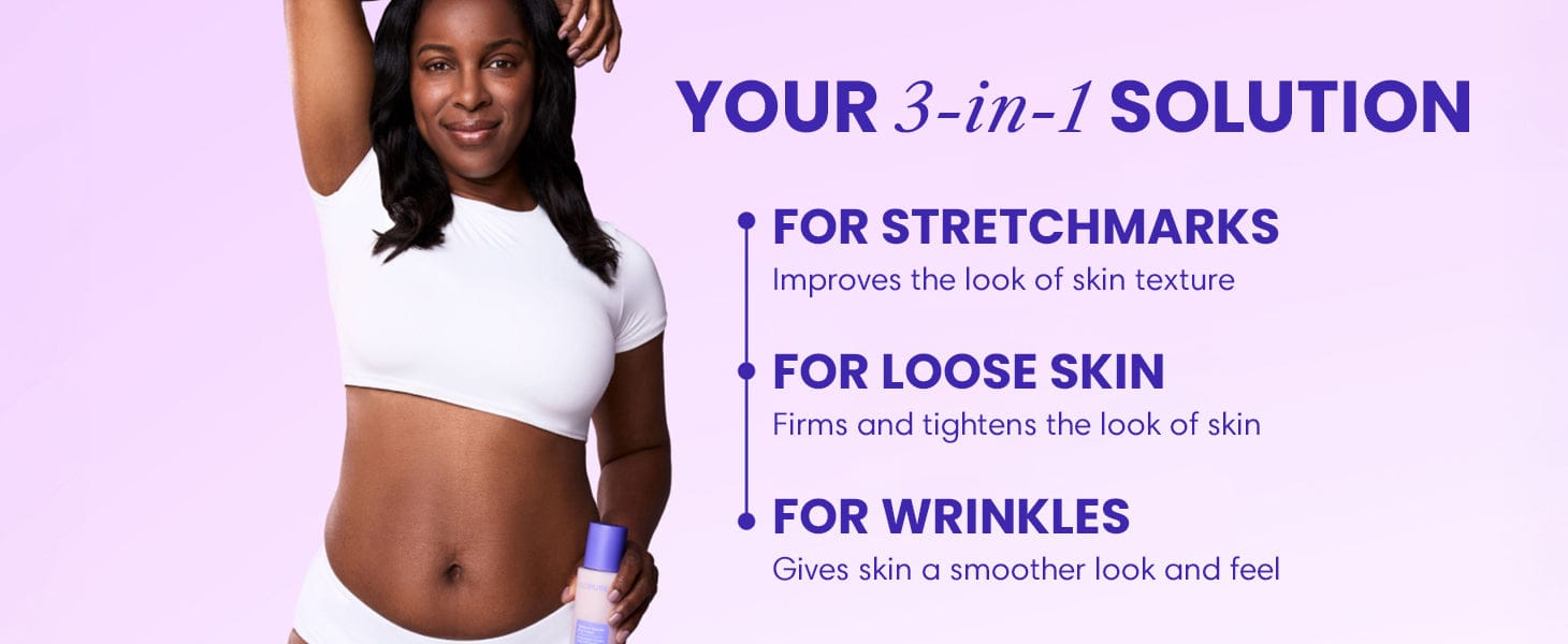 This targeted cream helps tighten, firm, and smooth the appearance of belly skin. It’s formulated to reduce the look of loose skin, stretch marks, fine lines, and crepey texture, while boosting hydration and skin elasticity.