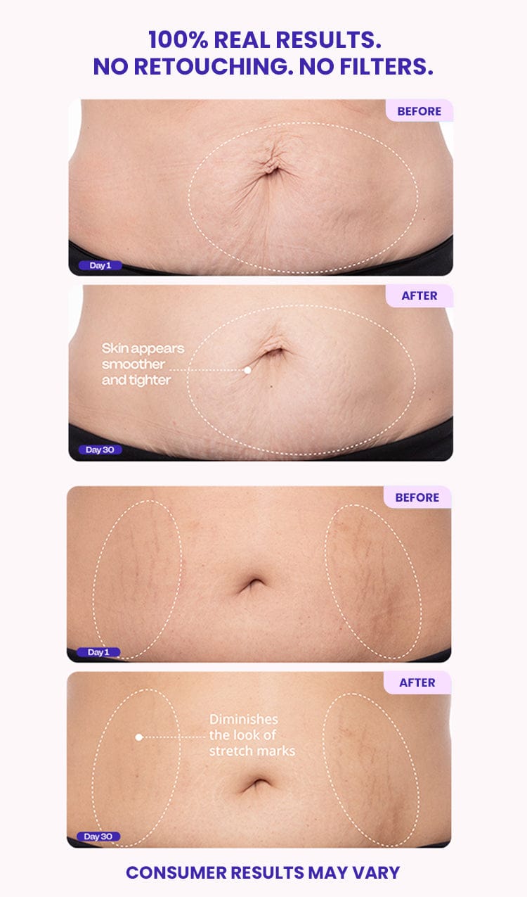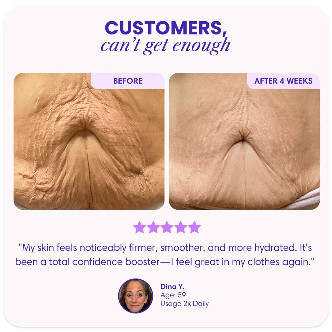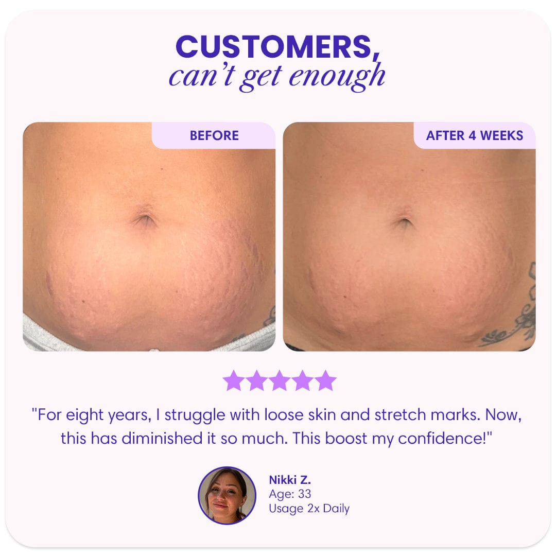 "My skin feels noticeably tighter and smoother. One of the biggest surprises has been how much my stretch marks have faded—their appearance is much softer and less noticeable."