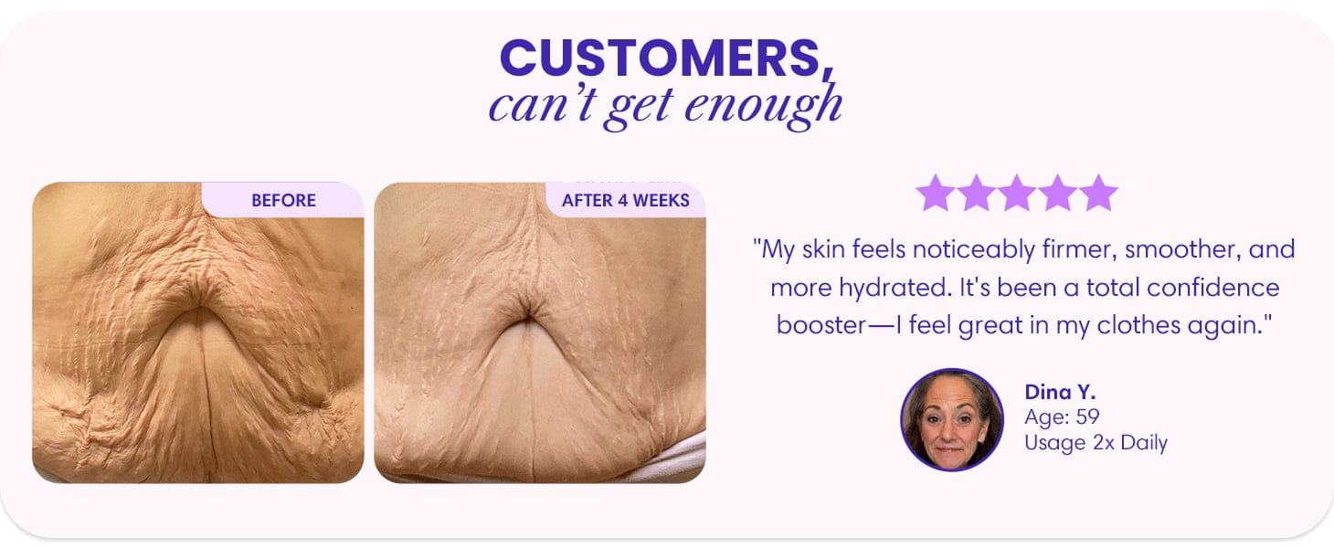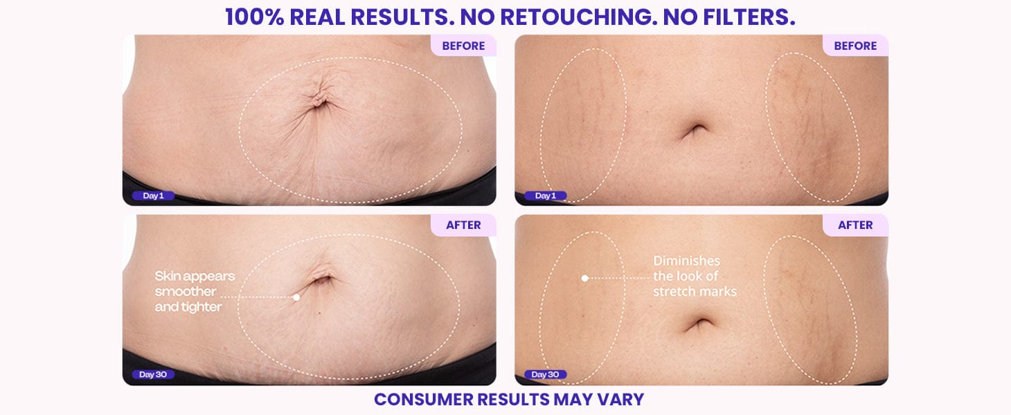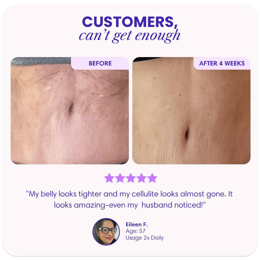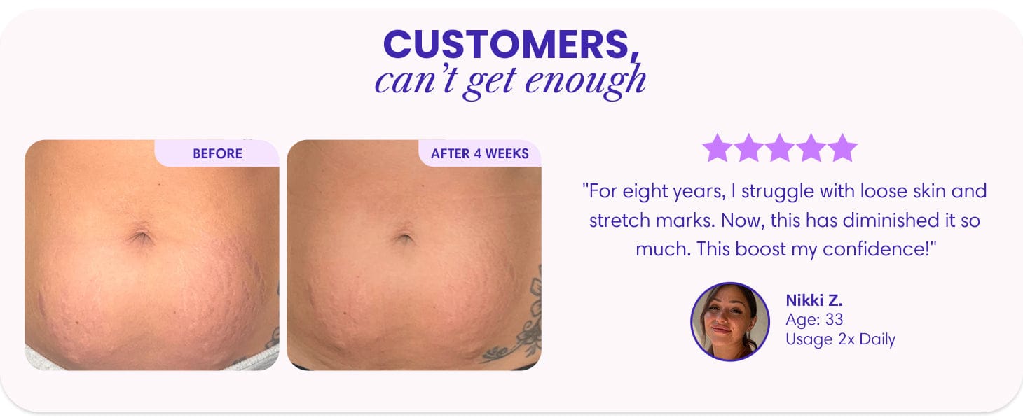 "My skin feels noticeably tighter and smoother. One of the biggest surprises has been how much my stretch marks have faded—their appearance is much softer and less noticeable."