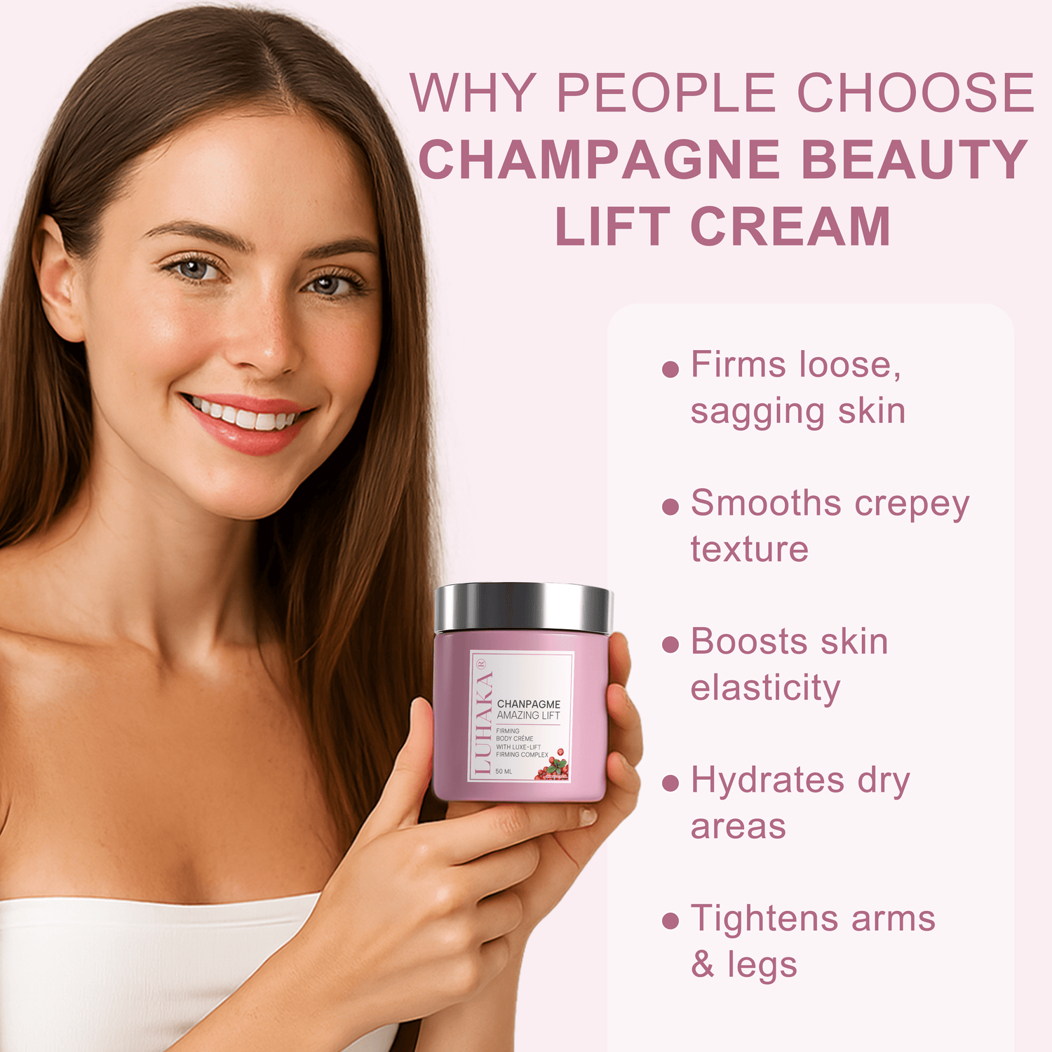 If sagging, crepey skin is making you avoid sleeveless tops or dread special events, Champagne Beauty Lift Cream is your answer.