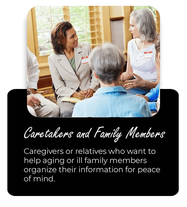 Organize your bank accounts, credit cards, investment accounts, retirement accounts, and property information. This section helps your loved ones manage your financial affairs and property efficiently.