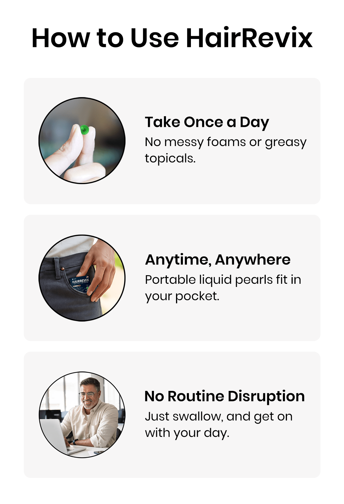 Yes. HairRevix works well alongside topical treatments like Minoxidil, microneedling, or low-level laser therapy.