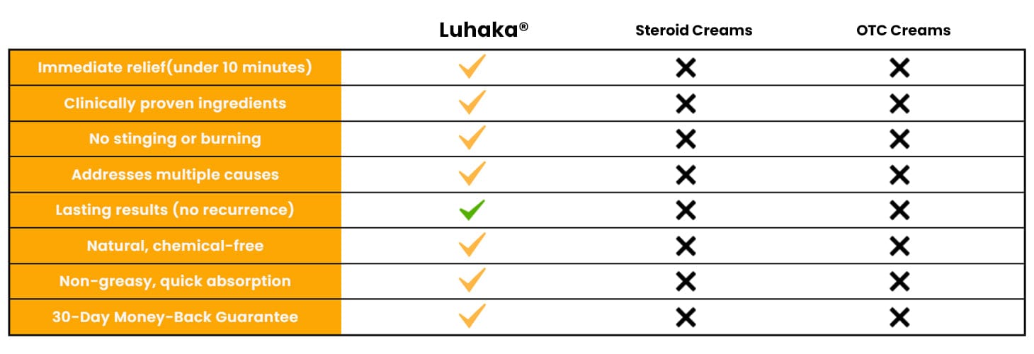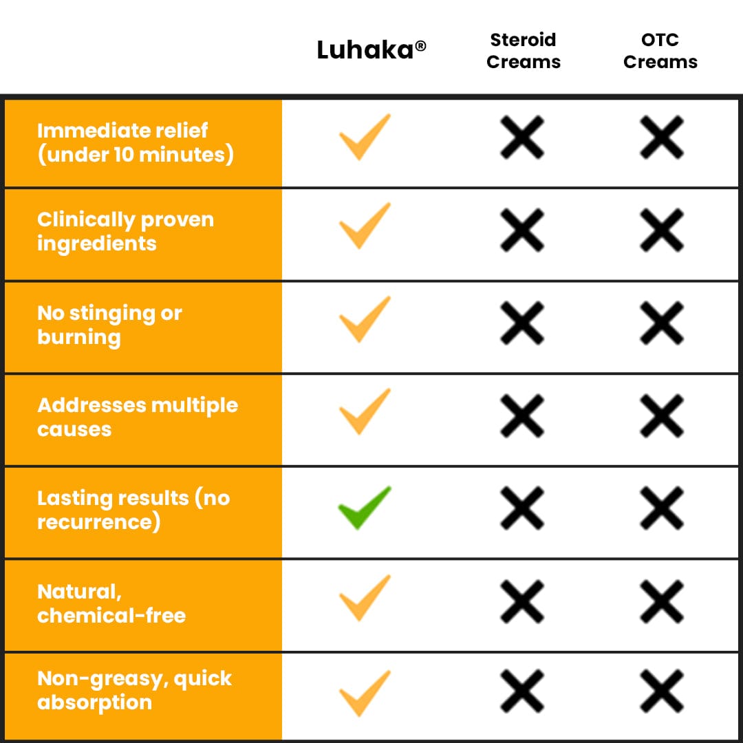 No. Unlike steroids that lose effectiveness or creams that only mask symptoms, Luhaka® helps your body heal itself. The improvements are lasting because we address the root cause, not just symptoms.