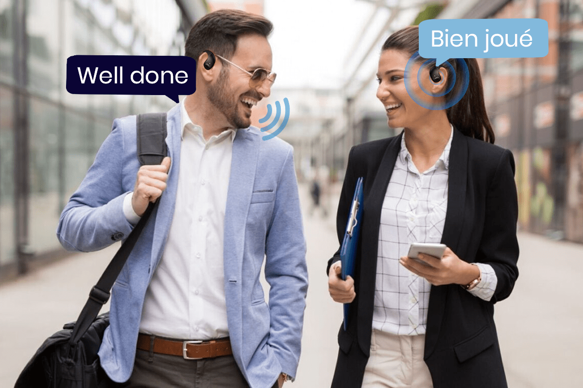 Dafeila™ Hearlingo translates conversations in real time, with translations appearing in under 0.8 seconds after you speak.