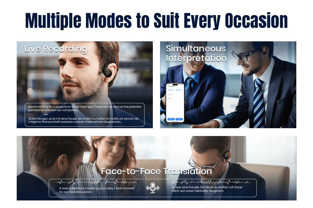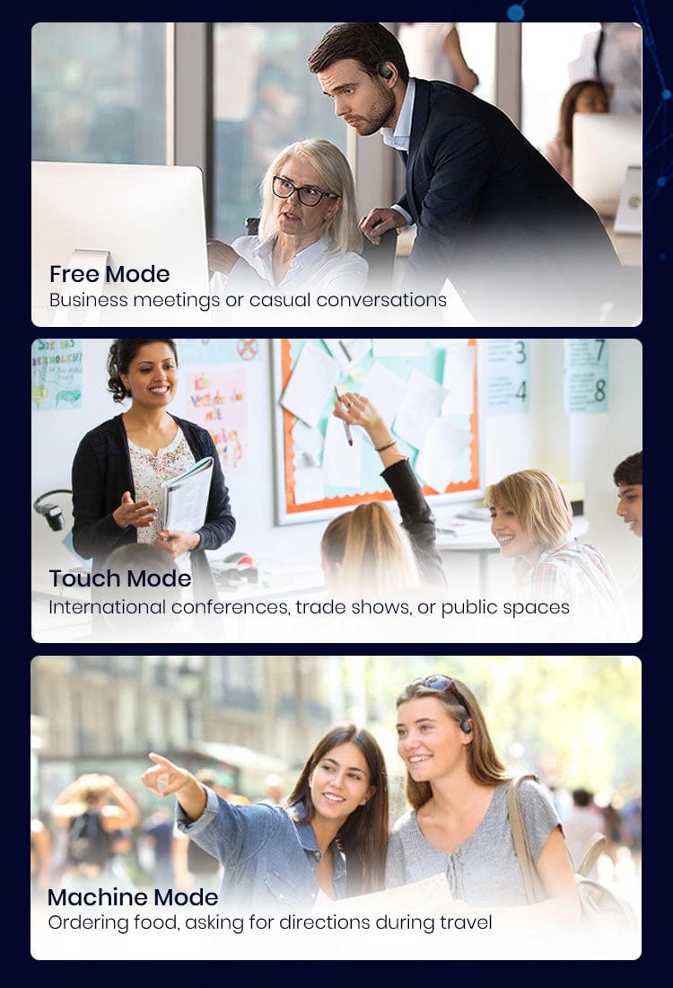 Whether you're in a business meeting, exploring new destinations, or having a casual conversation, switching between modes ensures seamless, accurate translations every time.