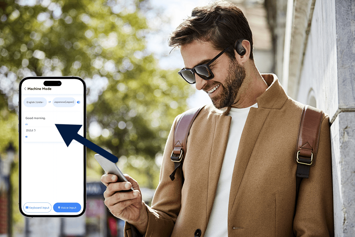 Single-Person Translation: When only one person wears the earphones, it listens to nearby conversations, translates them, and plays the translation through the earphones, with text displayed on the phone.