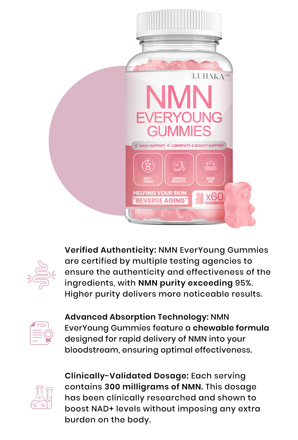 LUHAKA® NMN EverYoung Gummies is here to ease any worries, aiming to help every customer live a better, more youthful life.