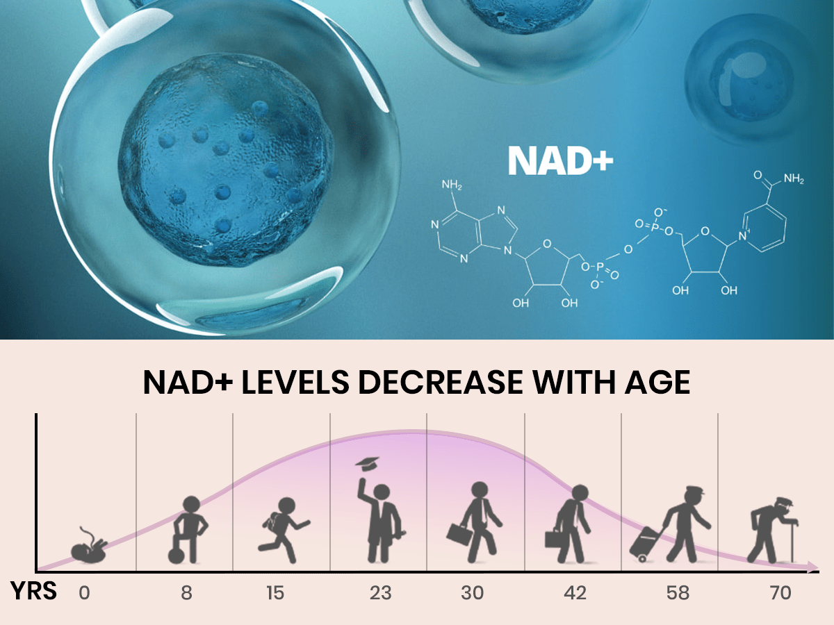 NAD+ levels are closely tied to healthy aging. A study published in *Nature Aging* shows a significant connection between NAD+ and health during aging. NAD+ (Nicotinamide Adenine Dinucleotide) is found in every cell and is essential for the chemical reactions that keep the body functioning. Unfortunately, NAD+ levels typically decline with age.