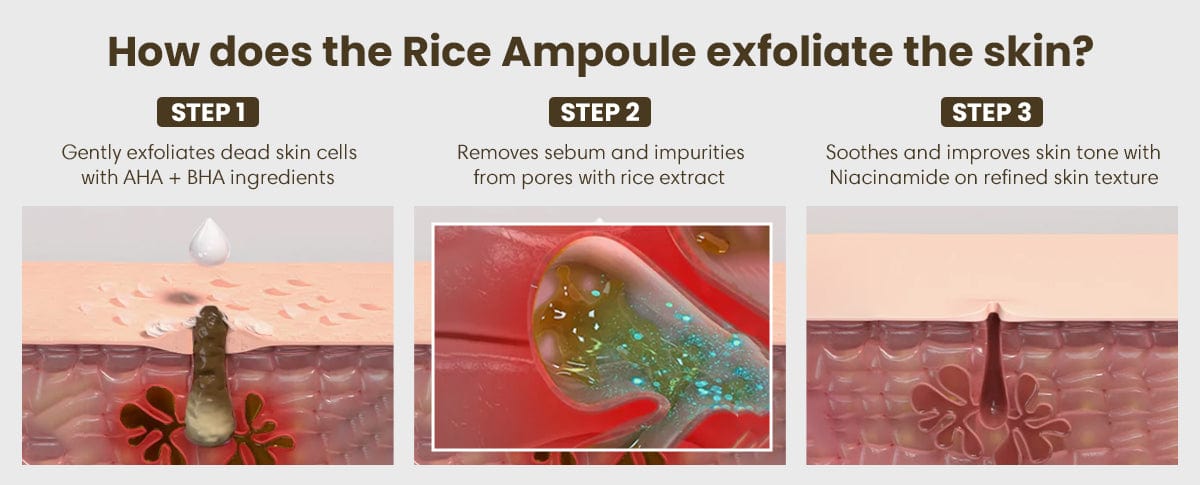 PENTA-RICE (Rice Water Extract + PENTAVITIN) : A unique blend that softens and removes dead skin cells while controlling excess sebum, providing instant hydration for a complete skincare feel after exfoliation.