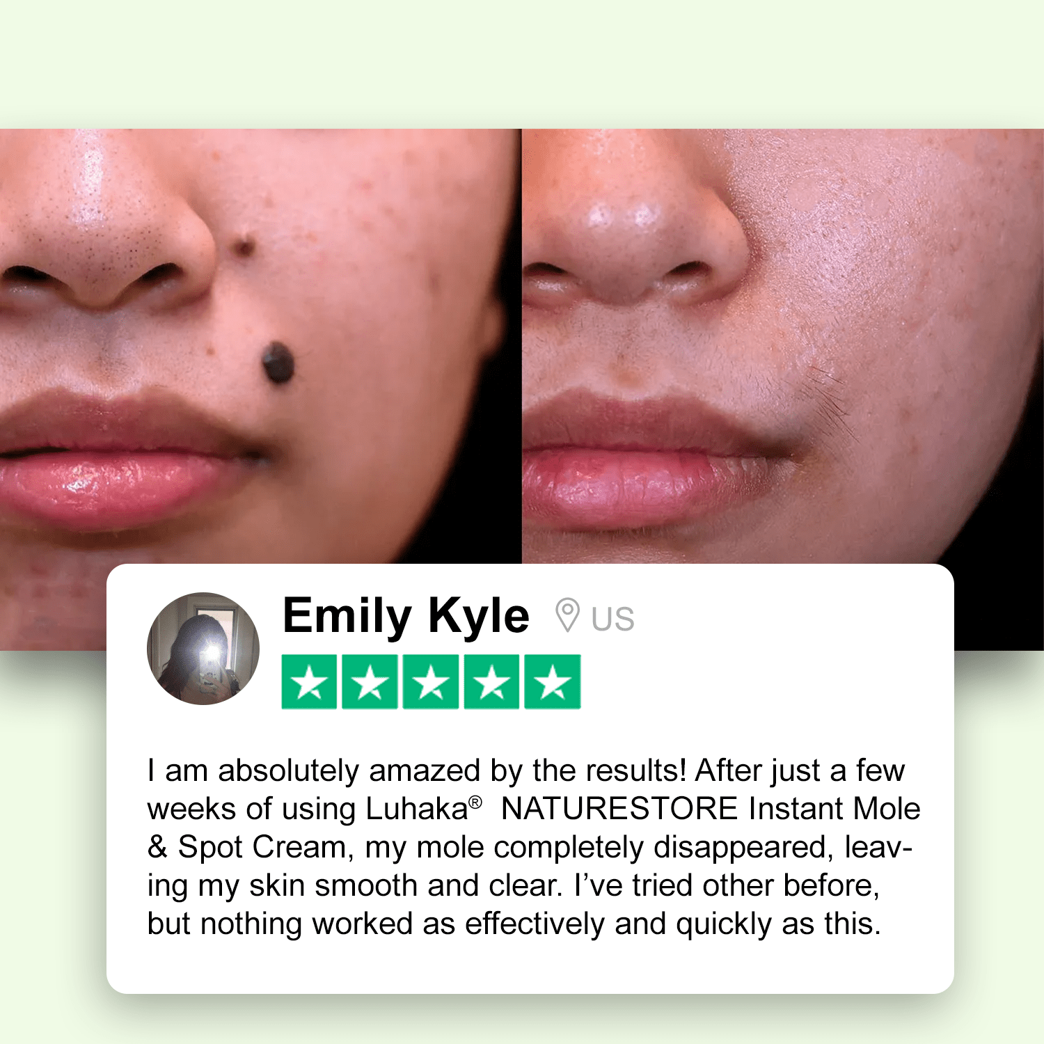 Discover the amazing results of Luhaka® NATURESTORE Instant Mole & Spot Cream, loved by countless users.