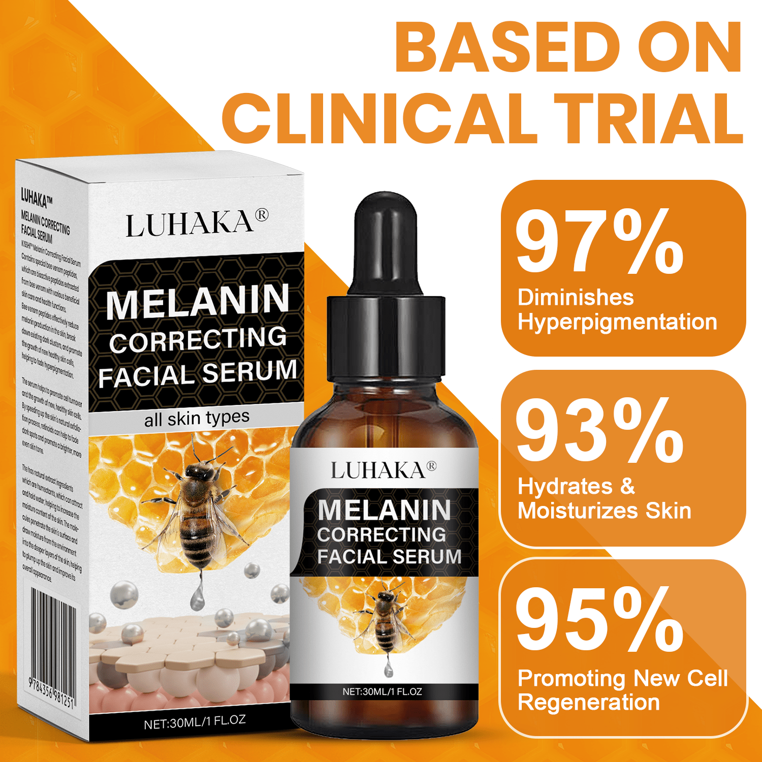 Luhaka® Melanin Correcting Facial Serum Contains special bee venom peptides, which are bioactive peptides extracted from bee venom with various beneficial skin care and health functions. Bee venom peptides effectively reduce melanin production in the skin, break down existing dark clusters, and promote the growth of new healthy skin cells, helping to fade hyperpigmentation.